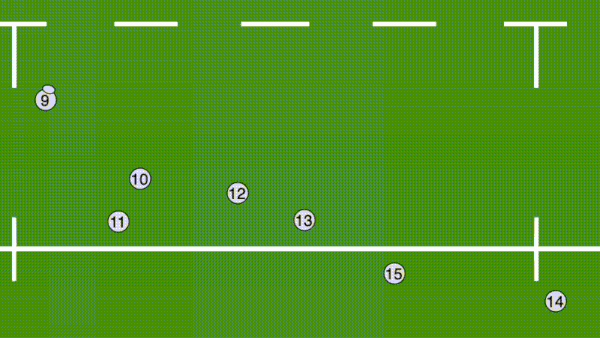 - Blind side winger comes across to take the ball behind 13, with 10 now outside him