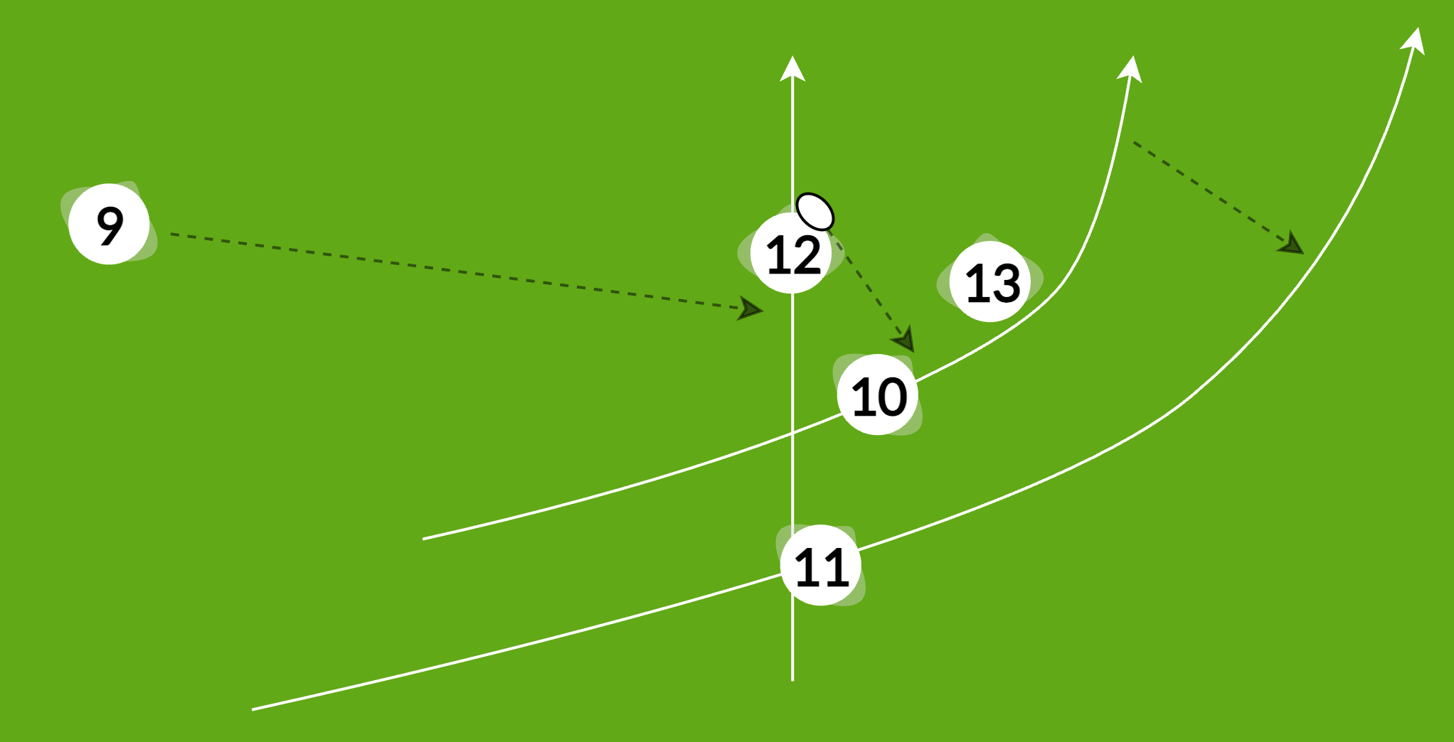 - 13 runs an out-to-in line; winger runs behind 12 to 13