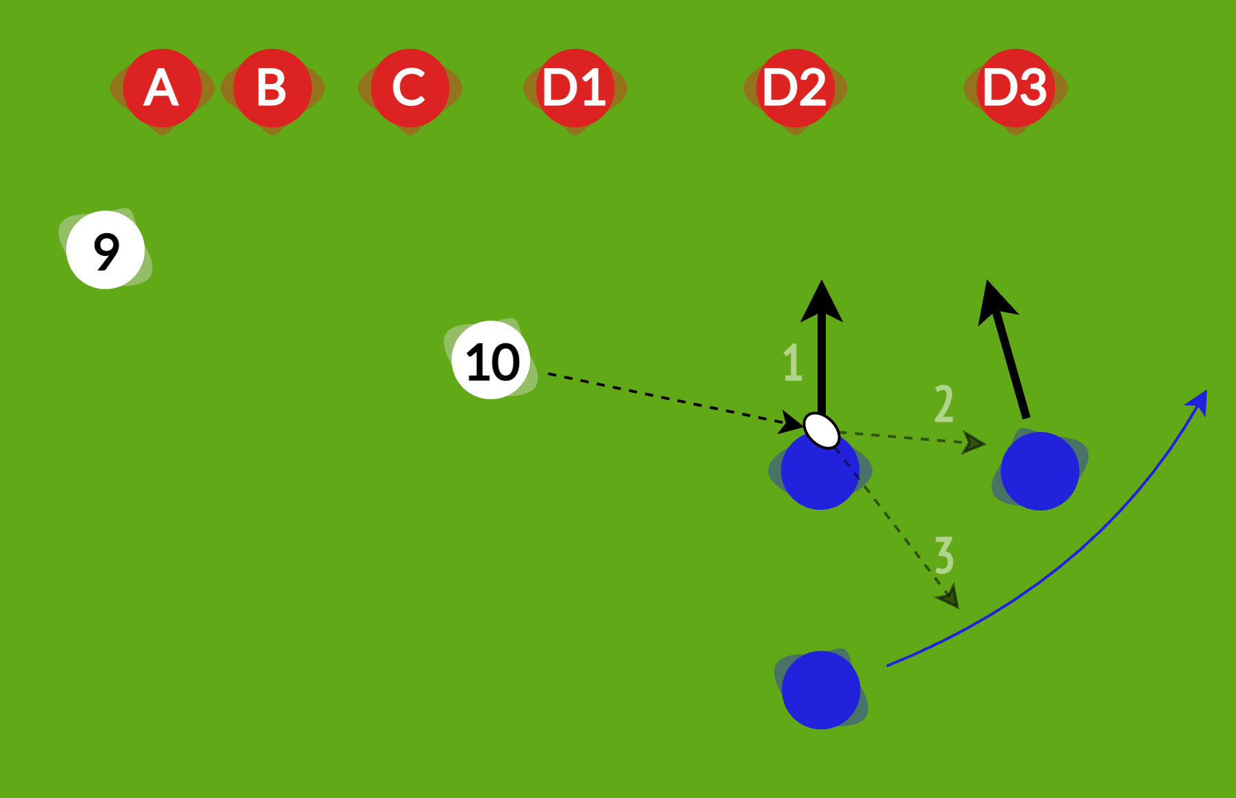 | Check, Move | Look across the defensive line and go forward |