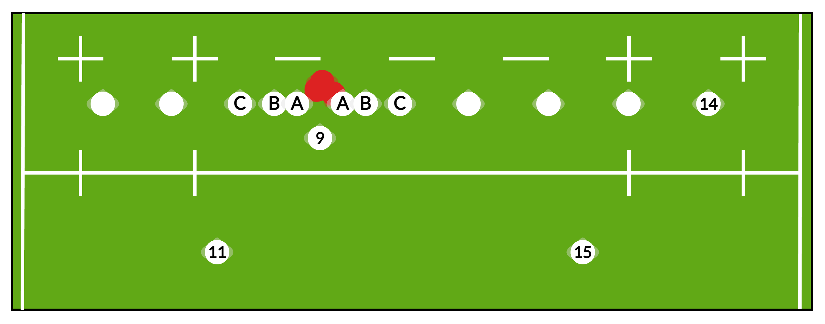 | A-B-C | A is Post, B is the link man and C is inside first defender |