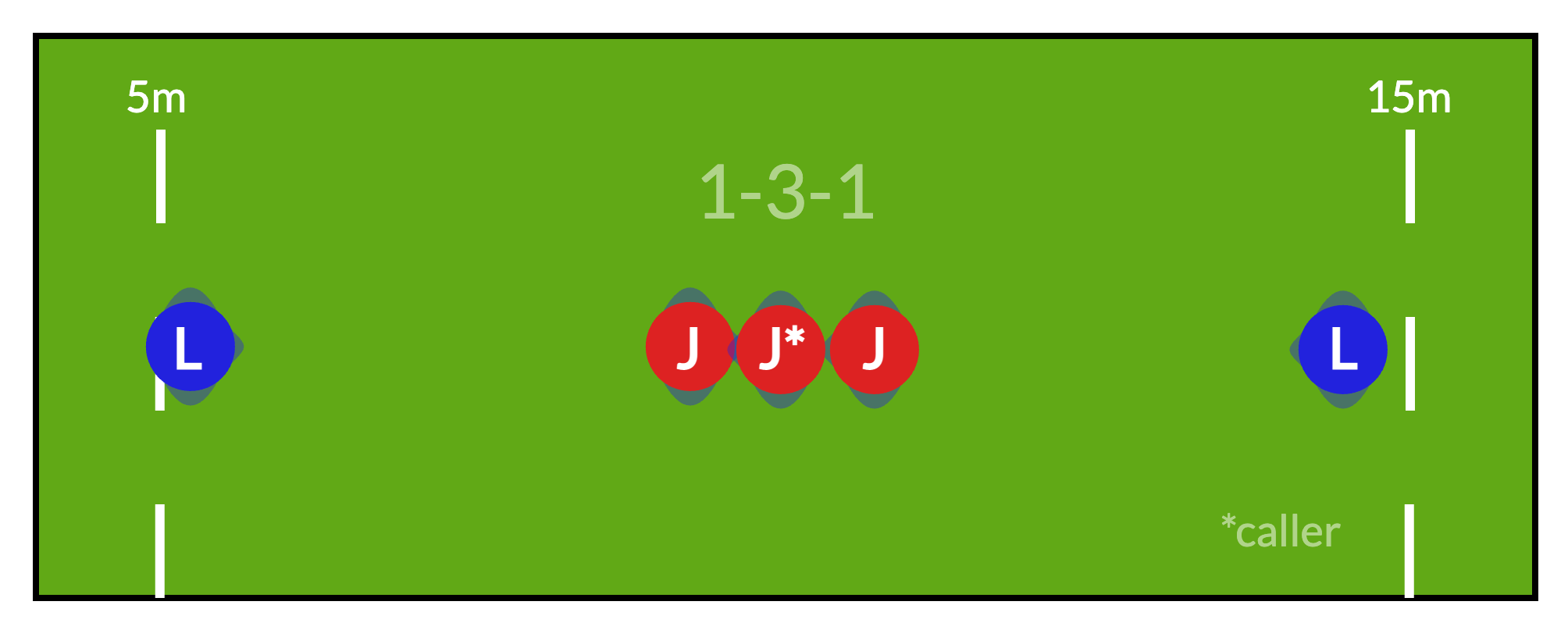 Our default is a 5-man “Squeeze” (1-3-1 formation) with a quick option (“Bang”) to override the call and throw straight to the middle.
